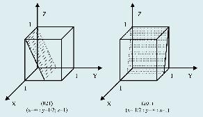 2) Lấy những giá trị nghịch đảo của những số trên và đưa chúng về những số nguyên bé nhất bằng cách nhân với một số nào đó. Viết kết quả trong ngoặc đơn (h k l). Đối với những mặt phẳng cắt trục toạ độ ở vô cực th. giá trị nghịch đảo là 0.