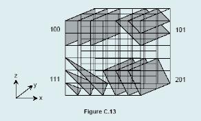Hình C.13 minh hoạ một bộ các mặt phẳng tinh thể trong tinh thể lập phương.