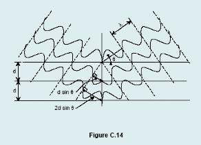 Hiệu ứng này được minh hoạ trên hình C.14. Khi chênh lệch độ dài quãng đường (Hiệu quang lộ) bằng toàn bộ số bước sóng, chùm tia X phản xạ là kết hợp, mặt khác chúng triệt tiêu lẫn nhau. Người ta có thể tóm tắt điều này bằng phương trình Bragg sau: