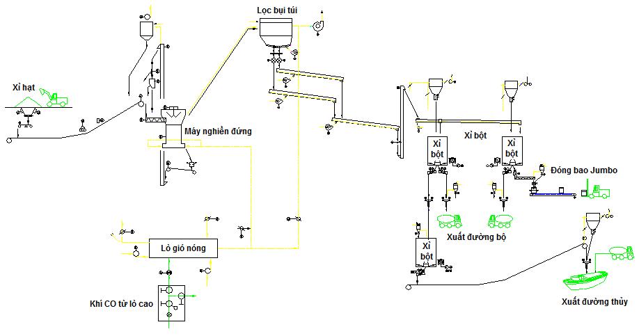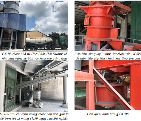 Kết quả nghiên cứu cho thấy sự linh hoạt trong việc sử dụng GGBS làm phụ gia để sản xuất xi măng pha xỉ hạt lò cao theo công nghệ nghiền riêng bằng cách trộn thêm GGBS vào xi măng PC50 ngay sau khi nghiền, từ đó có thể sản xuất được nhiều chủng loại xi măng khác nhau. Công nghệ này đã được áp dụng tại Nhà máy xi măng Thành Công 1 – Hải Dương để sản xuất xi măng hỗn hợp bền sun phát, xi măng ít tỏa nhiệt, xi măng xỉ, xi măng PCB40, xi măng xây trát MC25… Bằng công nghệ này nhà máy đã tăng thêm 30% sản lượng mà không cần phải đầu tư thêm máy nghiền. Dưới đây là một số hình ảnh ở Nhà máy xi măng Thành Công1.