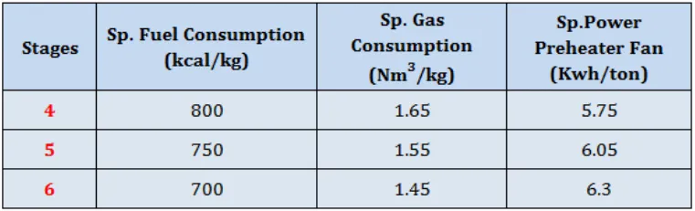Có thể thấy rằng sự phát triển của các cyclone có tổn thất áp suất thấp đã giúp thu hẹp mức tiêu thụ điện riêng giữa các tháp trao đổi nhiệt từ 4 đến 6 tầng. Nhờ đó, số tầng cyclone có thể tăng từ 4 lên 6 mà không phải đánh đổi bằng việc tăng tiêu thụ điện năng.