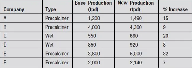 Hiện đã có một số nhà máy áp dụng công nghệ làm giàu oxy nhưng chưa phổ biến do chi phí còn cao. Khi nhu cầu thị trường tăng và giá xi măng thuận lợi, đây có thể là phương án khả thi. Bảng 1 trong tài liệu gốc liệt kê một số lò tại Hoa Kỳ sử dụng oxy cho đầu đốt chính hoặc precalciner.