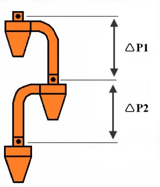Ban đầu, tháp trao đổi nhiệt chỉ được thiết kế với 4 tầng cyclone. Tổn thất áp suất của tháp trao đổi nhiệt 4 tầng vào thời điểm đó thường nằm trong khoảng 500 - 550 mm cột nước (mmWG). Khi tăng số tầng cyclone, tổn thất áp suất tăng thêm và làm triệt tiêu lợi ích thu được từ việc cải thiện hiệu suất tiêu hao nhiên liệu. Vì lý do này, trong một thời gian dài, ngành xi măng vẫn duy trì tháp trao đổi nhiệt 4 tầng cho đến khi các cyclone có thiết kế tổn thất áp suất thấp được phát triển.