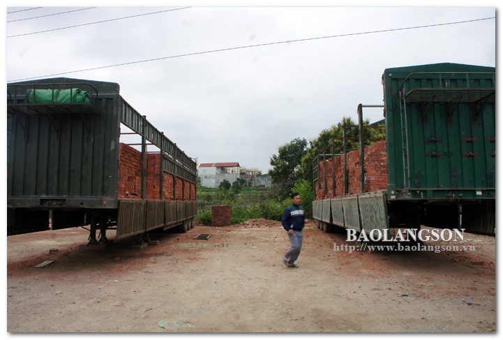 Gạch nung tuynel từ Bắc Giang được các đại lý bày bán tại quốc lộ 1A đoạn Cao Lộc và thành phố Lạng Sơn.