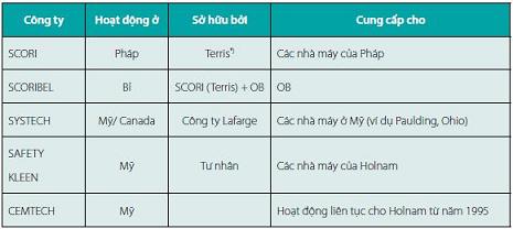Một số công ty mới thành lập đó được thiết lập thành công ty đặc biệt trong việc cung cấp các nhiên liệu thải. Chúng chịu trách nhiệm thu gom, chế biến, điều khiển và phân phối cho nhà máy xi măng. Trong một số trường hợp, các công ty xi măng đó chia xẻ với những công ty như vậy. Những công ty như vậy là một mắt liên kết quan trọng giữa nhà sản xuất rác thải với nhà máy xi măng.