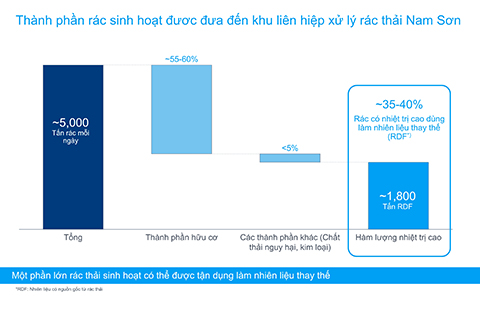 Qua các nghiên cứu về khối lượng và thành phần chất thải rắn sinh hoạt đổ về Nam Sơn, sau khi loại bỏ hợp phần hữu cơ, khoảng 35 - 40% chất thải rắn có hàm lượng nhiệt trị cao có thể sử dụng làm nhiên liệu thay thế có nguồn gốc từ rác thải (RDF). Với tỉ lệ trung bình này, nếu tất cả rác thải ở Nam Sơn được xử lý và phân loại, mỗi ngày ta sẽ thu được khoảng 1.800 tấn RDF.