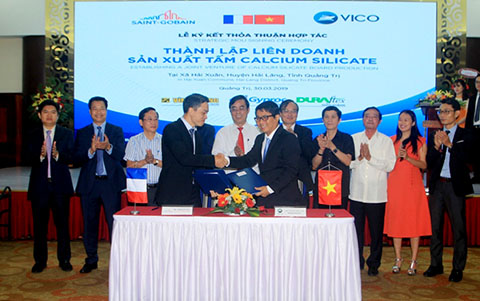 Ngày 30/3, tại TP Đông Hà (Quảng Trị), Công ty Vico Quảng Trị và Tập đoàn Saint-GoBain tổ chức ký kết thỏa thuận hợp tác thành lập liên doanh sản xuất tấm Calcium Silicate.