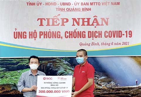 Ông Nguyễn Văn Thành, Tổng Giám đốc Công ty Xi măng Sông Gianh chia sẻ, thông qua số tiền đóng góp cho Quỹ phòng, chống dịch bệnh Covid-19 của Ủy ban Mặt trận Tổ quốc tỉnh Quảng Bình lần này, chúng tôi mong muốn được cùng với chính quyền địa phương và cộng đồng ngăn chặn sự lây lan của đại dịch và sớm hồi phục sinh kế cho người dân.