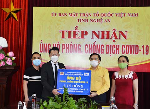 Công ty Cổ phần Xi măng Sông Lam trao tặng hỗ trợ quỹ phòng, chống dịch Covid-19 của tỉnh Nghệ An.