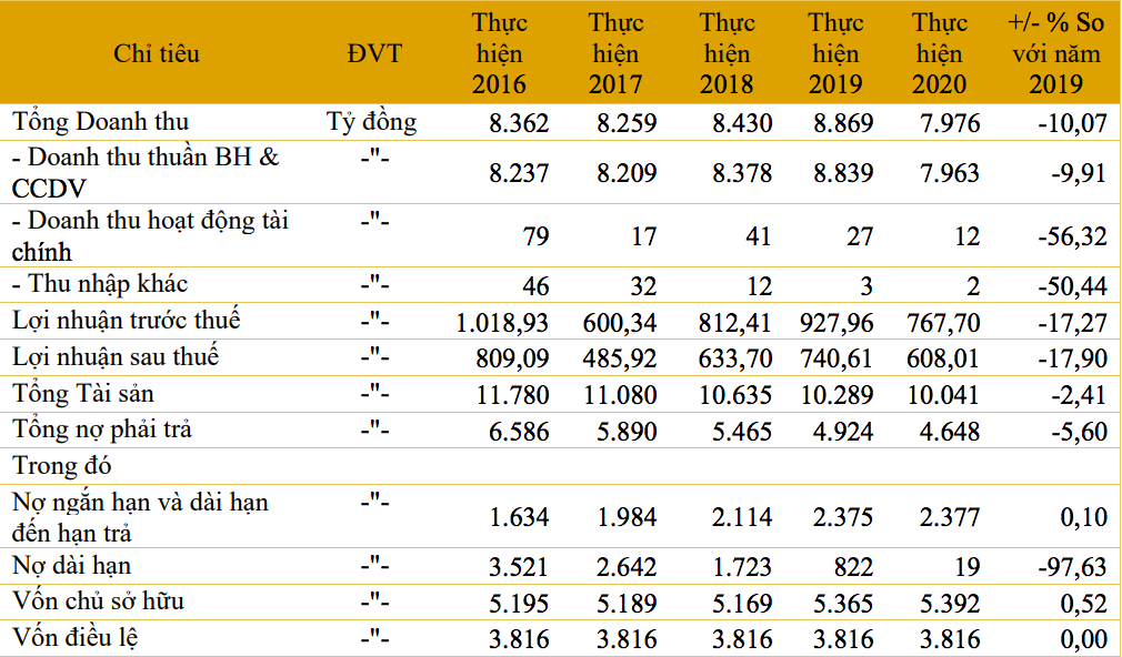 .Kết quả kinh doanh của Xi măng Hà Tiên 1 giai đoạn 2016 - 2020 (ĐVT: tỷ đồng).