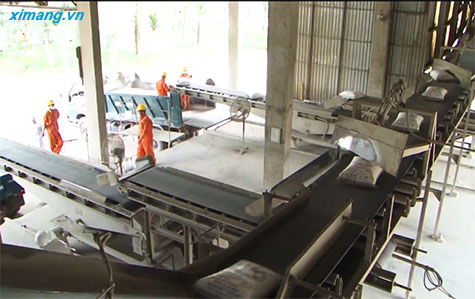 Dây chuyền xuất xi măng bao.